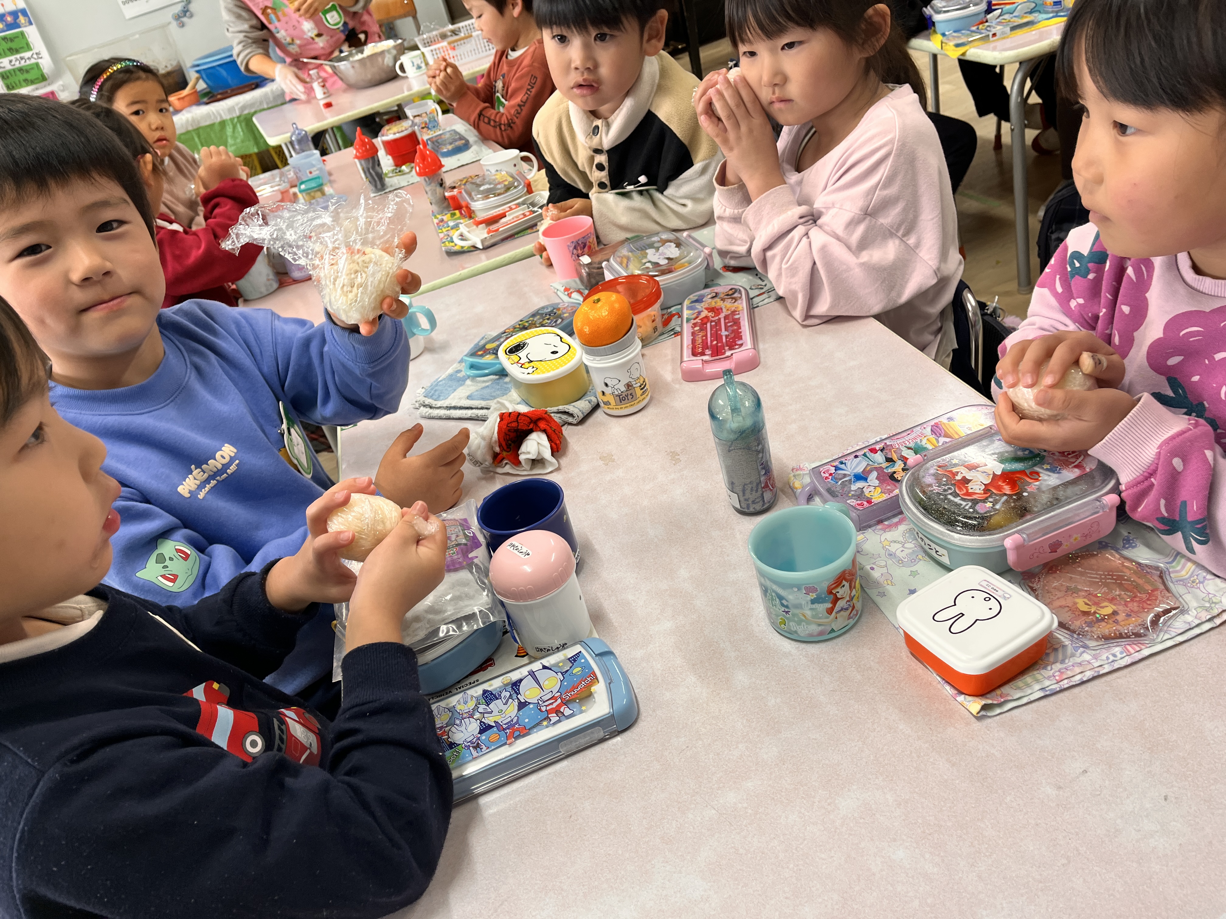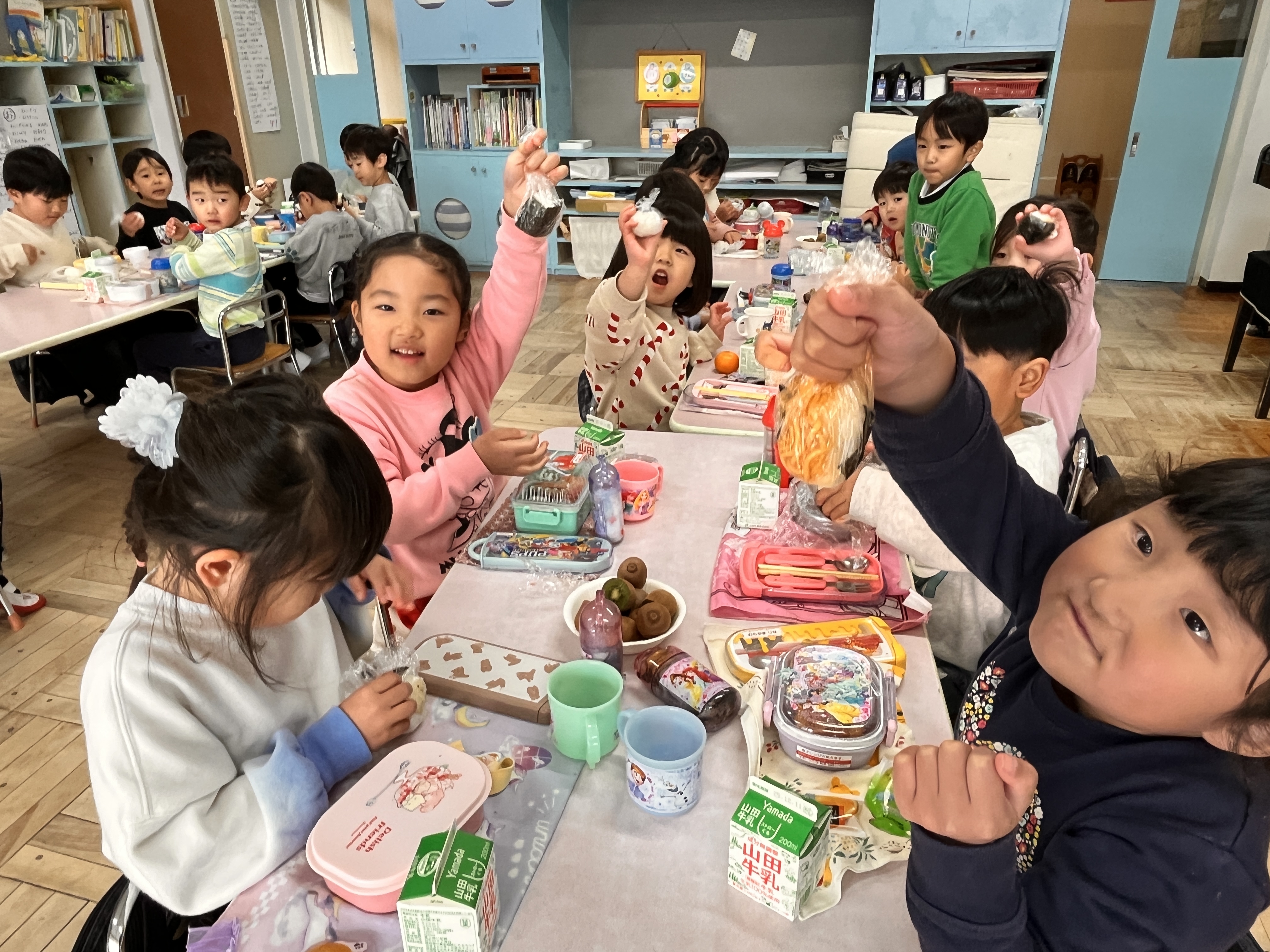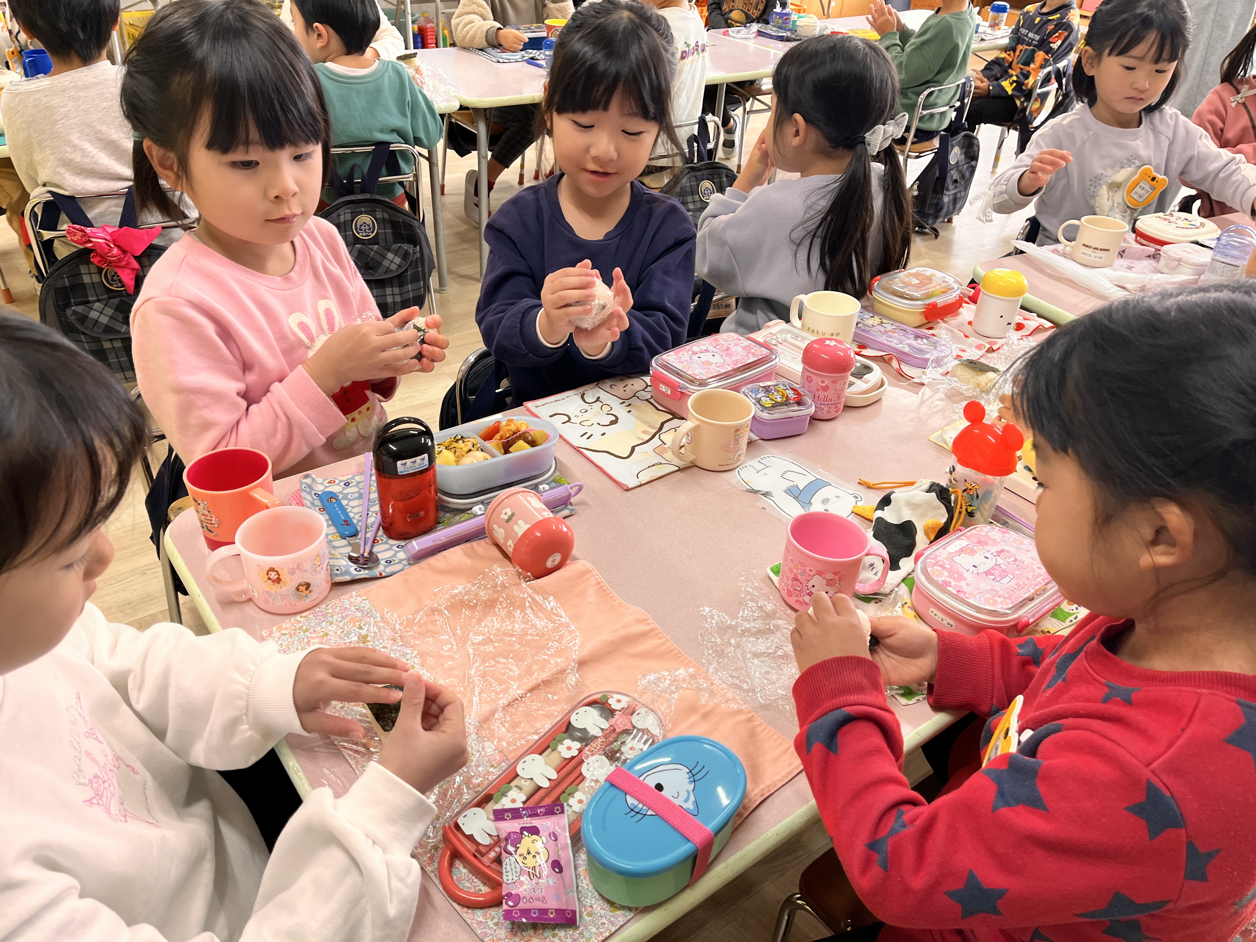 全部食べてしまい所をぐっとこらえて、おにぎりを握りに各クラスへ戻っていきました。