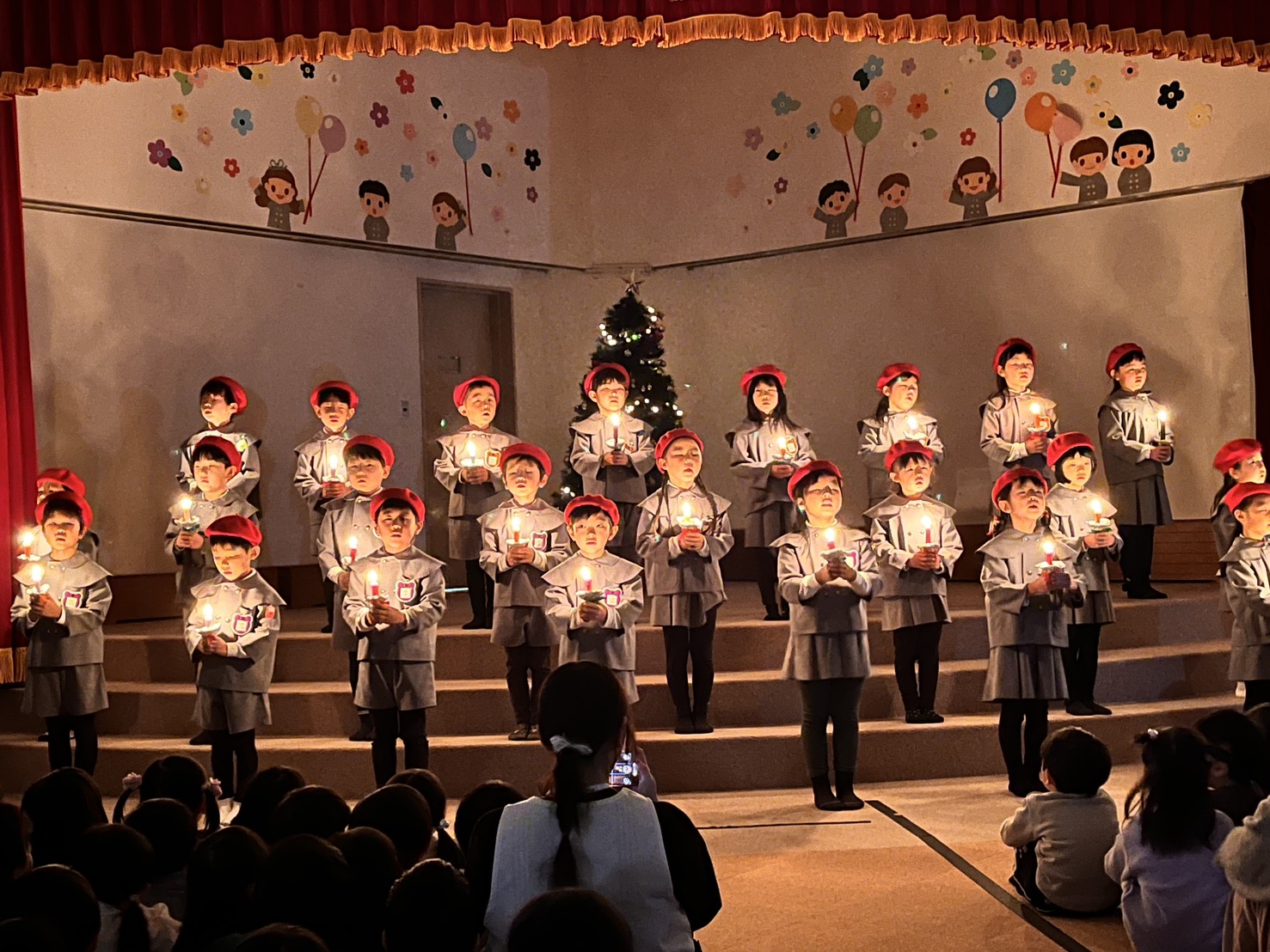 みんなが楽しみにしているクリスマス集会♪キャンドル代表の年長さんはこの日のために一生懸命練習をしてきました。キャンドルに本物の火をつけて入場する姿はやっぱり素敵💛