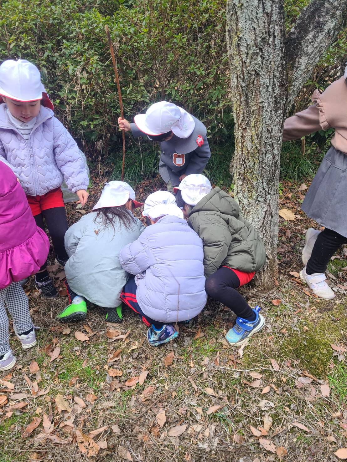 いよいよ明日は卒園式。今週の年長さんは、これまで一緒に過ごしてきた仲間と共に最後のめるへん生活を楽しみました。大好きな風の子公園に行くと、ひゃっほ~!!と大はしゃぎ🎵ハンモック・木登り・ターザンロープで思いっきり遊び、梅の花を見上げて「咲いてる~!」と喜び、「あ、ふきのとうだ!」とみんなでふきのとう探し、、、ふきのとうを当たり前のように知っている子ども達を見ていて、なんだか誇らしく感じました(*^_^*)子ども達は、この大きな大きな自然の中で、たくさんのことを育ててもらったんですね✨みんなで集めたふきのとうは、天ぷらにして食べました🎵ちょっぴり大人な春の味でした☆